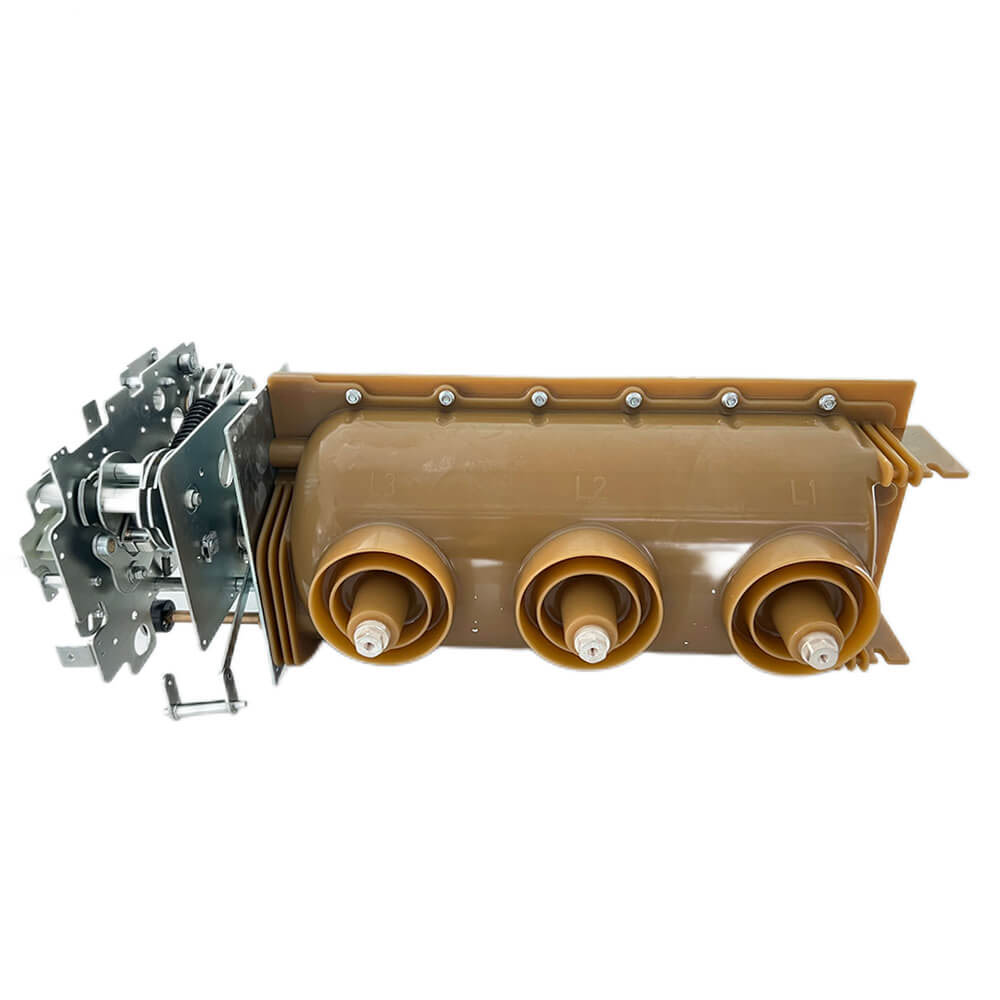 2. Използвайки SF6 газ като дъгова гасене и изолационна среда, основните вериги уплътняват от горната и долната корпуса, наливаща епоксидна смола, проводимата функция не се влияе от външни влияния.