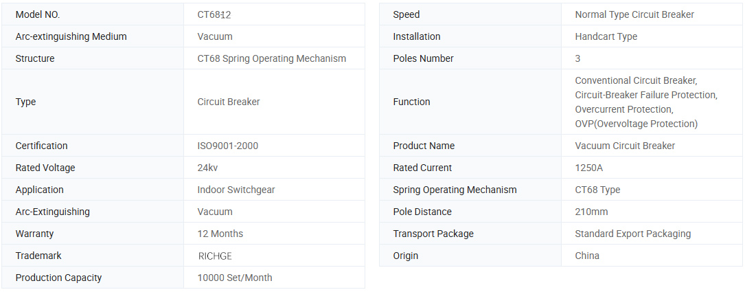 Вакуумният прекъсвач на CT68-12 приема специален контакт материал и прекъсвач с висок капацитет на счупване и с много дълга електрическа издръжливост.