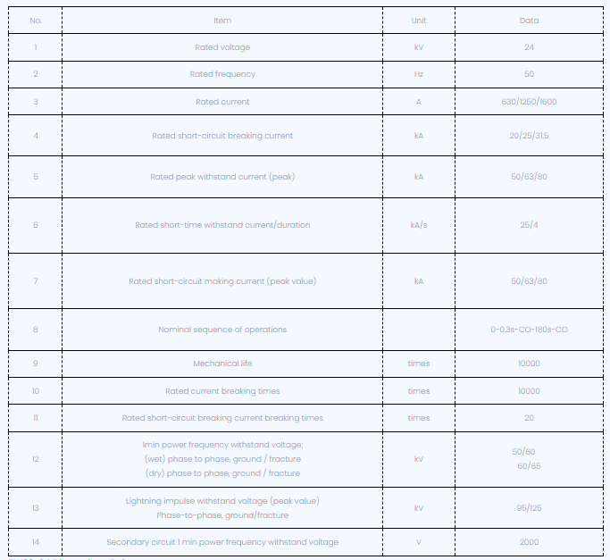 Прекъсвачът на веригата отговаря на техническите стандарти като GB1984-2003 Прекъсвач на променлив ток с високо напрежение, DL T402-2007 Технически условия за поръчка на променлив прекъсвач на променлив ток и DL / T403-2000 Технически условия за поръчка на 12KV ~ 40,5kV вакуумно напрежение.