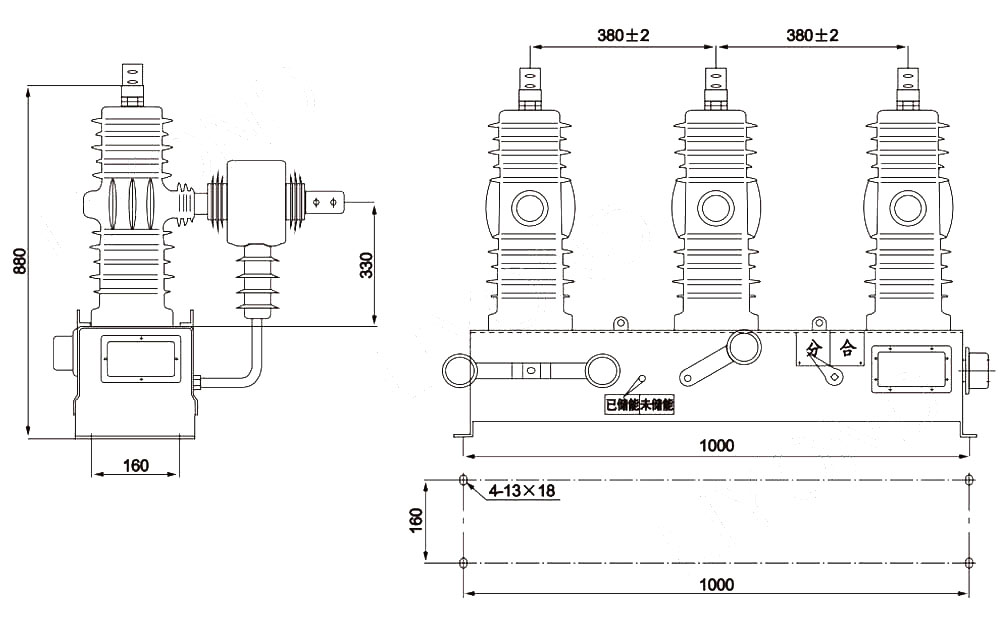 3. Оперативният механизъм е пружинен работен механизъм, който може да бъде ръчен или електрически. Когато е необходимо, може да се добави експлоатационно устройство за дистанционно управление и устройство, за да се избегне затварянето на тока на инкрустация. Необходимата мощност на външното захранване е не повече от 70W, което е лесно да бъде оборудвано с резервно захранване. Буферното устройство с уникален дизайн има отлична производителност, малък отскок и нисък шум.