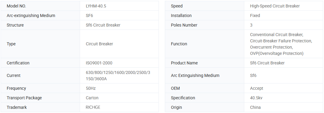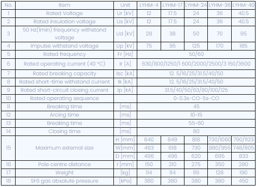 Серия LYHM SERID-VOLTAGE SF6 прекъсвачи на газови вериги Използват серен хексафлуорид (SF6) газ, тъй като дъгата гасене и изолираща среда.SF6 газът има гладки счупващи характеристики, при които не се генерира явление на прекъсване при прекъсване на тока и не се генерира оперативно пренапрежение. Тази отлична характеристика гарантира, че прекъсвачът има дълъг електрически живот. Той не оказва влияние върху шока, диелектричното ниво или термичното напрежение на оборудването по време на работа. Полюсът на полюса на прекъсвача, т.е. прекъсващата секция, е затворена система без поддръжка за живот. Животът на запечатването е в съответствие с IEC 62271-100 и CEI17-1. Процесът на отваряне/затваряне на прекъсвачите на серията Lyhm се извършва от Spring Actuator Type. и компактната конструкция на прекъсвача гарантира, че тя е здрава и надеждна.