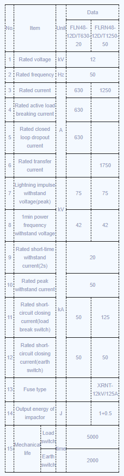 Технически параметри на FLN48-12D тип вътрешен HV SF6 прекъсване на товара