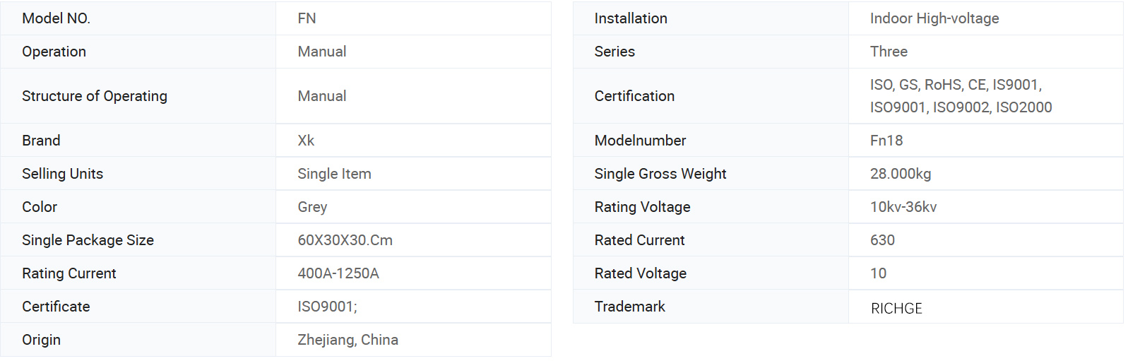 Използва се в трифазни разпределения на захранване с AC 50Hz номинално напрежение 12kv и номинален ток 630A Esp За захранваща пръстеновидна мрежа в градска мрежова конструкция, подобряване на строителството, високи сгради и обществени съоръжения като идеален продукт за защита на пакетни подстанции и трансформатори. Има характеристиките на усъвършенстван дизайн, проста работа, ударна структура, интелигентен външен вид, леко тегло, пълна функция, бърза скорост на включване и изключване и висока надеждност.