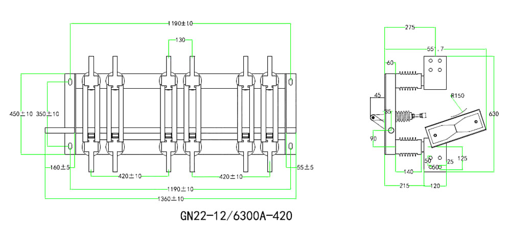 Серията GN22-12 (C) (D) превключвател за изключване на високо напрежение на захранване е проектиран за захранващи системи с номинална напрежение от 12kV и честота 50Hz. Това устройство се използва главно за схеми за отваряне и затваряне в захранващата система при условия без натоварване. С високите възможности за издържане на ток той е идеален за приложения, изискващи висока сигурност и чести операции. Устройството може да бъде конфигурирано така, че да отговаря на различни екологични нужди.