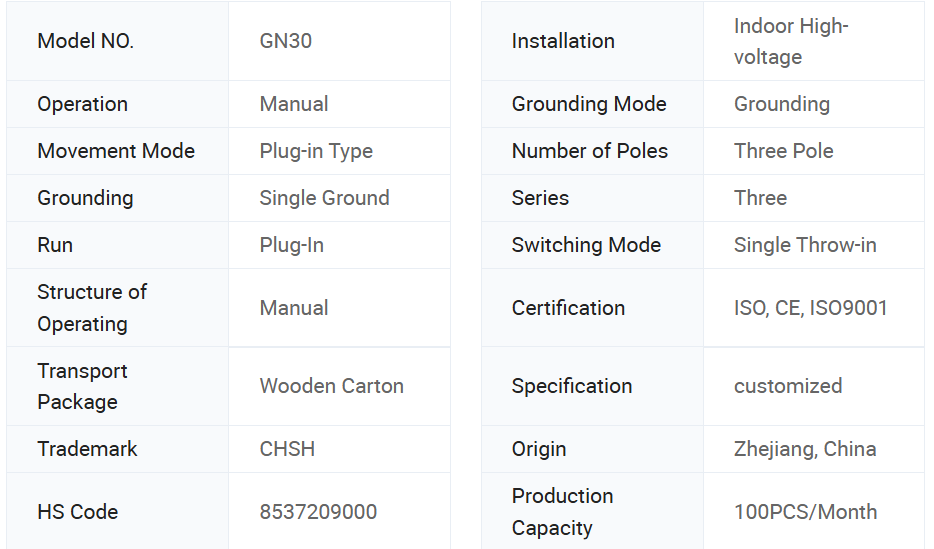 GN30-12 Тип въртящ се на закрито изолиращо превключване на високо напрежение е нов тип изолиращ превключвател с нож за контакт с въртящи се. Основната структура е, че горните и долните равнини на трифазното общо шаси са фиксирани с два комплекта изолатори и контакти, а превключвателят се отваря и затваря чрез завъртане на контактния нож.