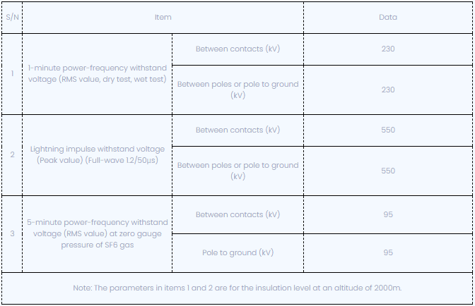 Поради присъщата си якост на изолация на серен хексафлуориден газ и оптималното движение на контакт на прекъсвача, прекъсвачът на веригата нарушава капацитивния ток без царуване; Външното ниво на изолация е високо, външната изолация е проектирана с голямо разстояние на пълзене, разстоянието на съотношението на пълзене е ≥31mm/kV, а характеристиката на устойчивост на мръсотия е отлично. Той също може да работи безопасно в сурови среди;