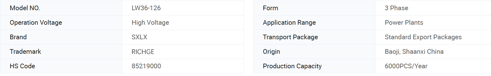 Този продукт използва SF6 газ, както и дъгата гасене, така и изолационна среда. Той е оборудван с най-новата самонареждана технология за гасене на дъга и разполага с нов механизъм, управляван от пролетта. LW36-126/3150-40 предлага дълъг електрически живот, ниски усилия за работа, нисък шум и висока надеждност, което го прави най-надеждният избор за зони с голяма надморска височина или 132kV захранващи системи. Той може също да замени внесените продукти от същия тип.