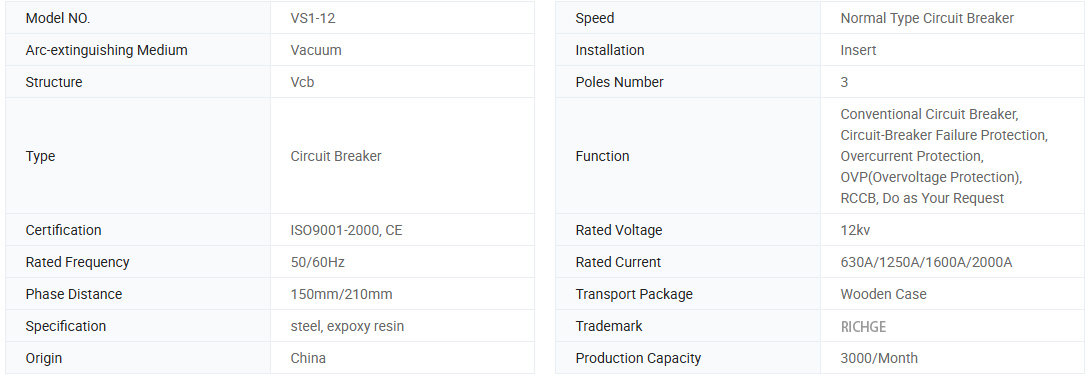 VS1 (ZN63A) -12Series на вътрешния вакуум-прекъсвач с обикновен изолиран цилиндър е трифраза A.C. 50 Hz на закрито оборудване за разпределение на захранването с номиналното напрежение от 12kV. Използва се за защита на контролирането на електрическото оборудване в областта на индустрията и минното предприятие, електроцентралите и подстанцията. Този тип вакуумни вериги отговаря на националните стандарти и уговорката на стандарта IEC, способността достига степен на M2-E2-C2.