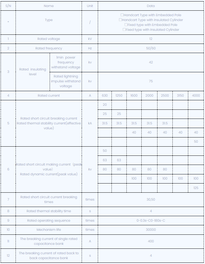 Вътрешните прекъсвани вакуумни прекъсвачи са подходящи за трифазни променливи системи с номинални напрежения до 12 ~ 24kV и честота 50/60Hz. Те се използват широко в електроцентрали, подстанции, нефтохимикали, металургия, производство и други индустрии, летища, жилищни райони, ...