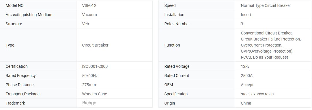 Вакуумният прекъсвач VSM-12 интегрира постоянен оперативен механизъм за магнит и вакуумно прекъсване в конфигурация отпред и отглеждане. Прекъсвачът разполага с дизайн на типа за изтегляне с фиксирана колона за изтичане на дъга (плътни уплътняващи стълбове) и е предназначен за висока надеждност и производителност в взискателни електрически среди.