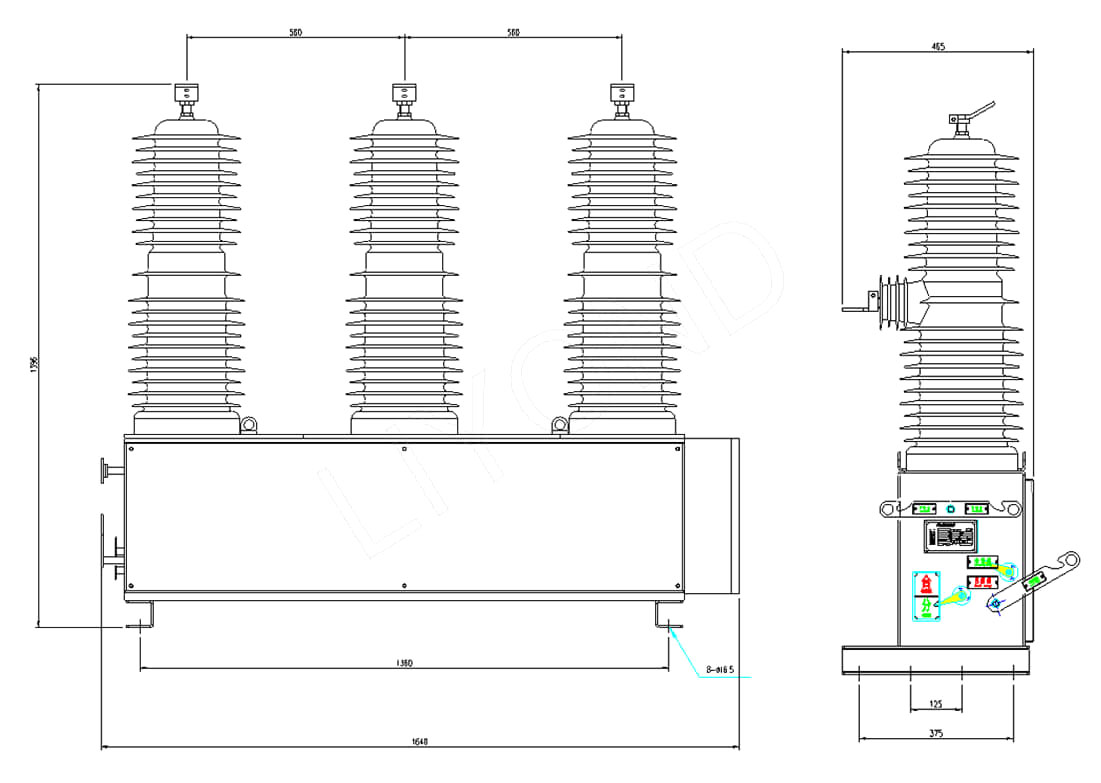 (3) Превключващите превключватели могат да се добавят отстрани на прекъсвача, за да се образува външен вакуумния прекъсвач на високо напрежение и комбиниращ превключвател на превключвателя на открито, което увеличава видимите прекъсвания и има надеждна операция на блокиране.